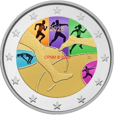 FINLANDE, 2 € commémorative 2025 "Athlétisme" COLORISEE, type II (livrée sous capsule).