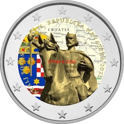 CROATIE, 2 € commémorative 2025 "Royaume de Tomislav" COLORISEE, type III (livrée sous c...