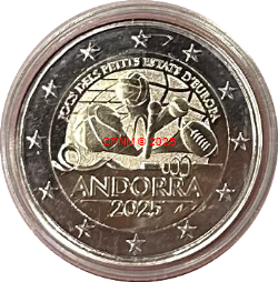 ANDORRE, 2 € commémorative 2025 "Jeux des Petits états d'Europe", livrée sous capsule.