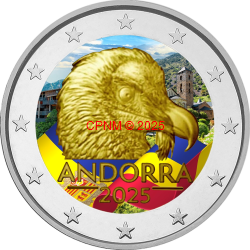 ANDORRE, 2 € commémorative 2025 "Gypaète barbu" COLORISEE, type II (livrée sous capsule).