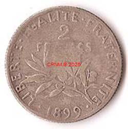 2 francs 1899, Argent, 10 grammes d'argent 835°/°°