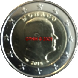 MONACO, pièce de 2 euros 2015 à l'effigie de S.A.S. le Prince Albert II.