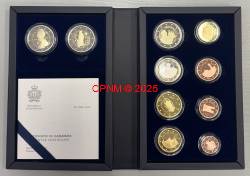 SAINT-MARIN, coffret BE "Belle Epreuve" 2025, incluant en plus de la traditionnelle série de 8 pièces les DEUX 2 € commémoratives de l'année (Michel Ange & Jubilée). Petit tirage de seulement 3.000 coffrets ! Avec certificat d'authenticité.