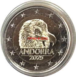ANDORRE, 2 € commémorative 2025 "Gypaète barbu", livrée sous capsule.