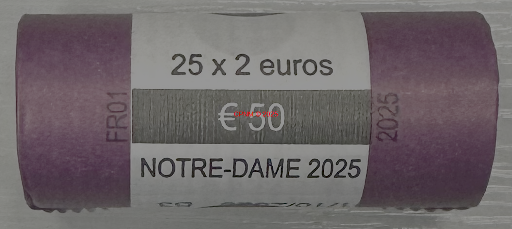 FRANCE, 2 € commémorative 2025 "Notre-Dame de Paris", frappe en FDC (Fleur De Coin), livrée sous capsule.